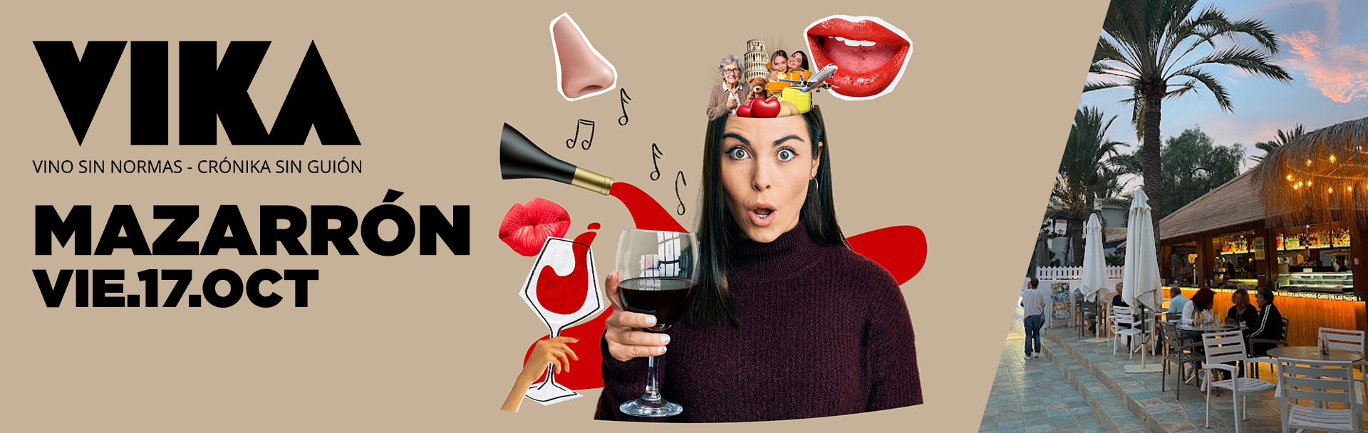 Disfruta en Oasis de las Palmeras del primer evento Vika Echo. Olvídate de las catas aburridas, de hablar de si el vino huele a cuero viejo o frutas que nadie ha probado. Esto es otra cosa. Esto es VIKA ECHO — El viaje de Tu Vida.